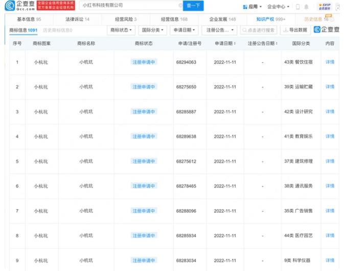 近日,小红书科技有限公司申请注册“小杭坑”商标,国际分类涉及通讯服务、教育娱乐、医疗园艺等。企查查信息显示, 小红书日前还申请“法务薯”、“小红书外人”、“小红书未来品牌”等多个商标。