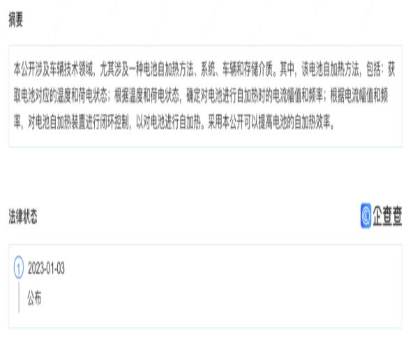 据企查查APP显示,近日,小米汽车科技有限公司“电池自加热方法、系统、车辆和存储介质”专利公布。